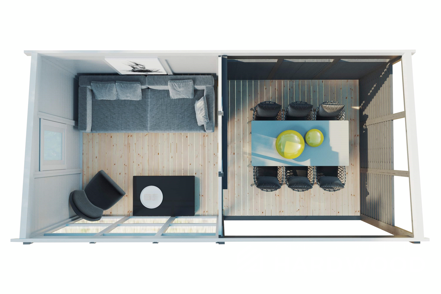 Все элементы постройки окрашиваются в 2 слоя с промежуточной и финишной шлифовкой. Стандартная краска Teknos Akrylin (цвет на выбор) по каталогу RAL Classic – более 1000 цветов. Масло, пропитка или другие производители красок – рассчитываются индивидуально